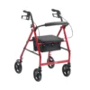 Walkers and rollators provide balance and stability for those who require assistance when walking. Walkers have either no wheels or two non-swivel front wheels and two rear legs with pads that provide stability. Rollators have four wheels, with the front wheels being swivel casters for maneuvering. Rollators also have braking handles for added safety. Most models of walkers and rollators can be folded easily for transport and storage. Walkers and rollators also come equipped with a seat. Some seat heights are adjustable, providing more comfort for the user. Seats on these devices are typically used for resting as opposed to continuous transport.